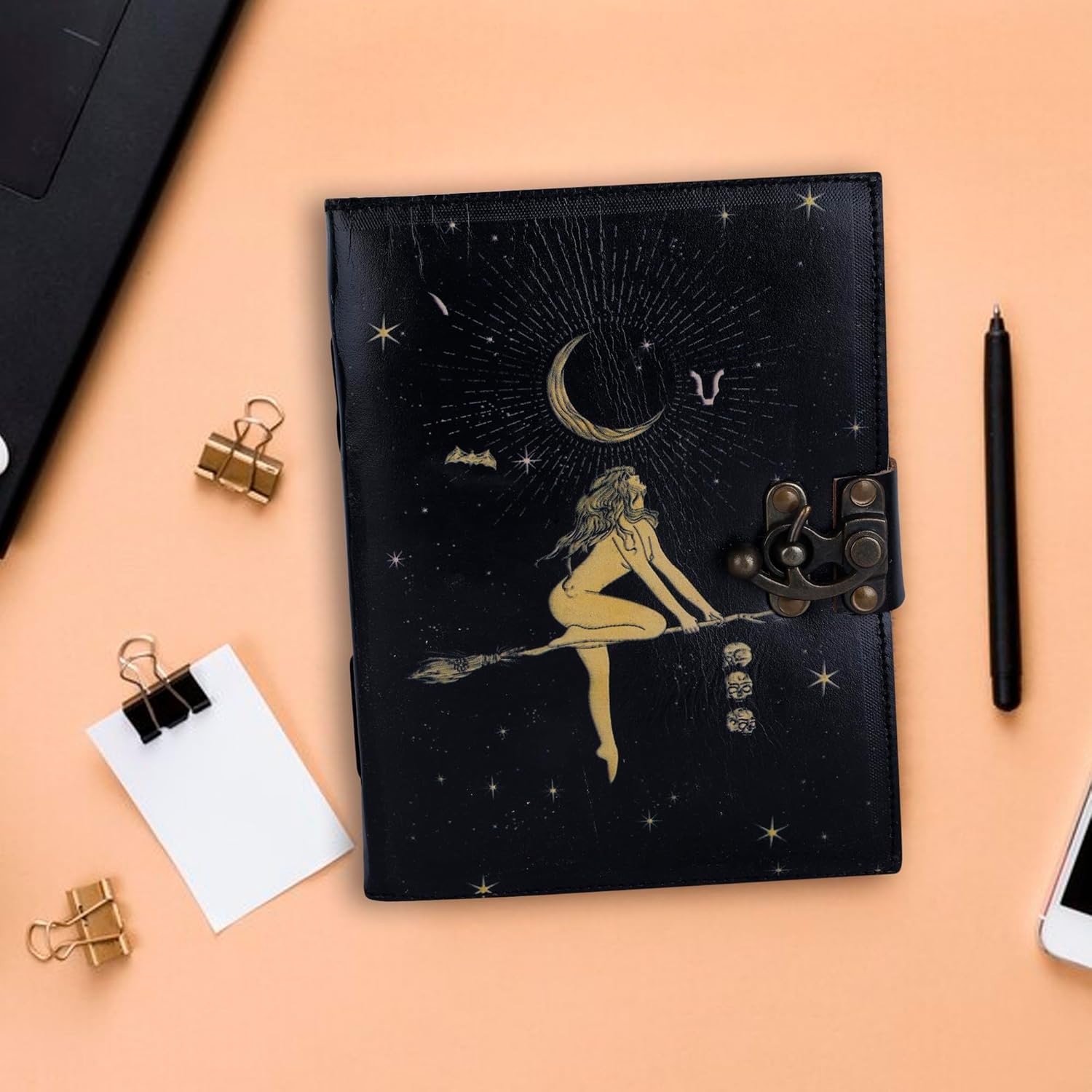 OD-35 OVERDOSE Celestial Sun & moon Handmade vintage leather journal • Deckle edge paper 6/8