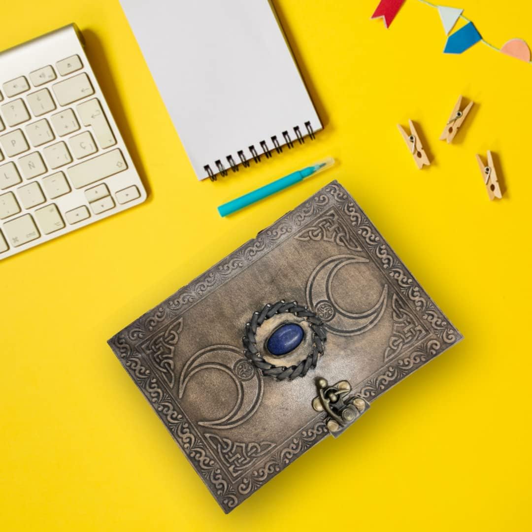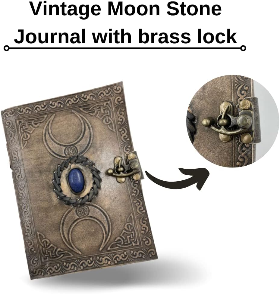 OVERDOSE Vintage Moon Stone Leather Journal - Antique Handmade Edge Paper 5/7