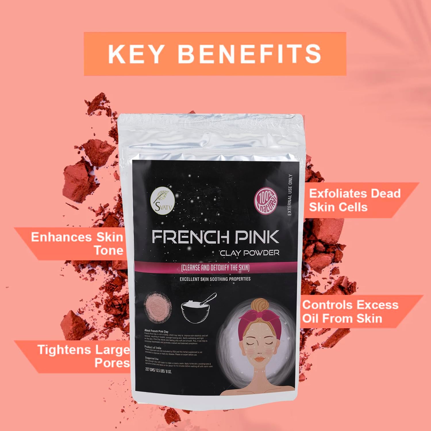 SVATV Herbal French Pink Clay Powder For Skin 227gm (8_oZ)