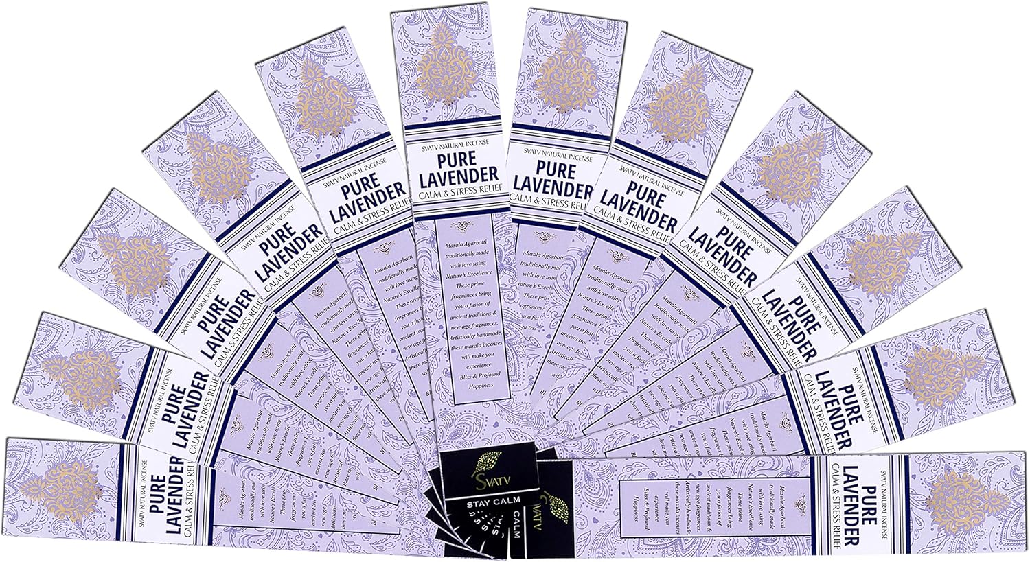 - Love The Fragrance :: Détendez-vous avec les bâtons d'encens Svatv Lavender car ils vous transportent dans un agréable pays de parfums. Un mélange parfait d'arômes, avec une note de fond de bois élaborée par les experts de Simply Vedic, ces bâtons ont été conçus pour aider à créer un environnement calme et relaxant. Essayez-les et vous tomberez sûrement amoureux du parfum.